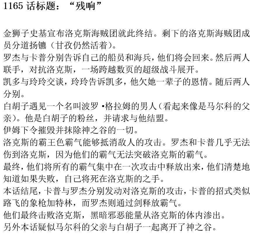 #海贼王#点评:金狮子抢戏有点多,但他似乎拿了不少宝藏难怪他后面能组建那么庞大的海贼团凯多明明是靠自己实力抢吃成功的但到玲玲嘴里变成一辈子的恩情关键凯多几十年来也没有直接打脸反怼按照伊姆黑转支配巨人族首领后的描述黑转支配是会大大增加强原有实力的那么洛克斯此时实力应当也被增强所以卡普罗杰只有联手才可能打败他洛克斯被霸气击破后有邪恶能量渗出不知道是本来没有再生能力,还是霸气导致?但至少这场属于过去的顶上战争已经结束了弄成剧场版会很爽吧,毕竟动画TV质量不稳定